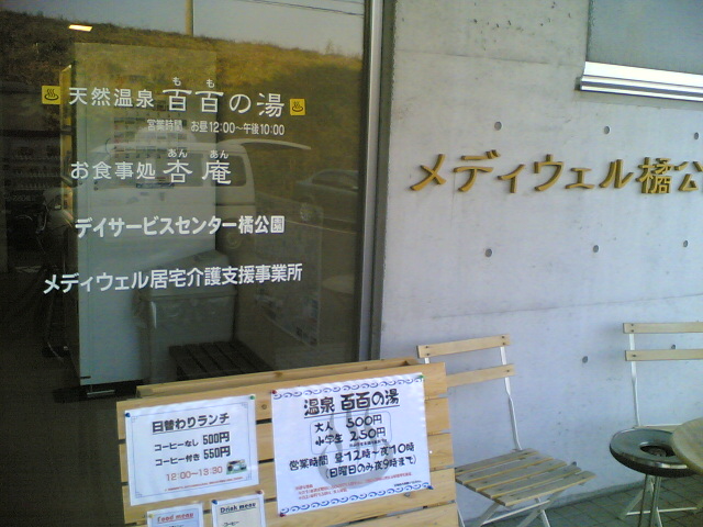 4つのホテル(ホテルプラザ宮崎、宮崎観光ホテル、ホテル金住、ホテル浜荘)で温泉を楽しむことができるそうですが、他にも「百百(もも)の湯」という日帰り入浴施設がありました。デイサービスを兼ねてるのかな?一応露天風呂もあるそうです。