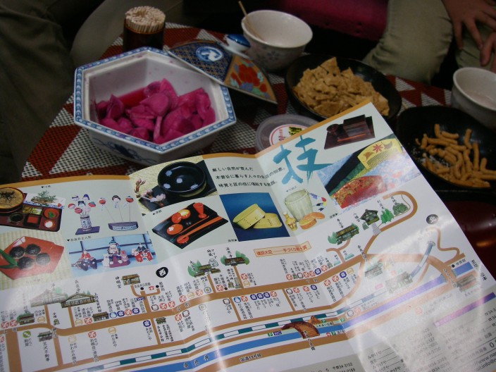 このお店のおばあちゃんもとっても気さくで親切。桜茶の後リンゴ→みかん→ヤクルト→コーヒーと次々におもてなしをしてくれ、お子さんの話から子育てのコツなどためになるお話をいっぱい聞かせてくれました。