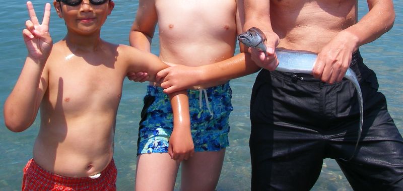 10:30から15:00まで海水浴の傍ら釣りを楽しみ、