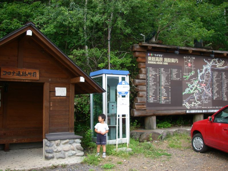 乗鞍高原の超メジャーな日帰り入浴施設「湯けむり館」の数十m手前の「コロナ連絡所前」というバス停。