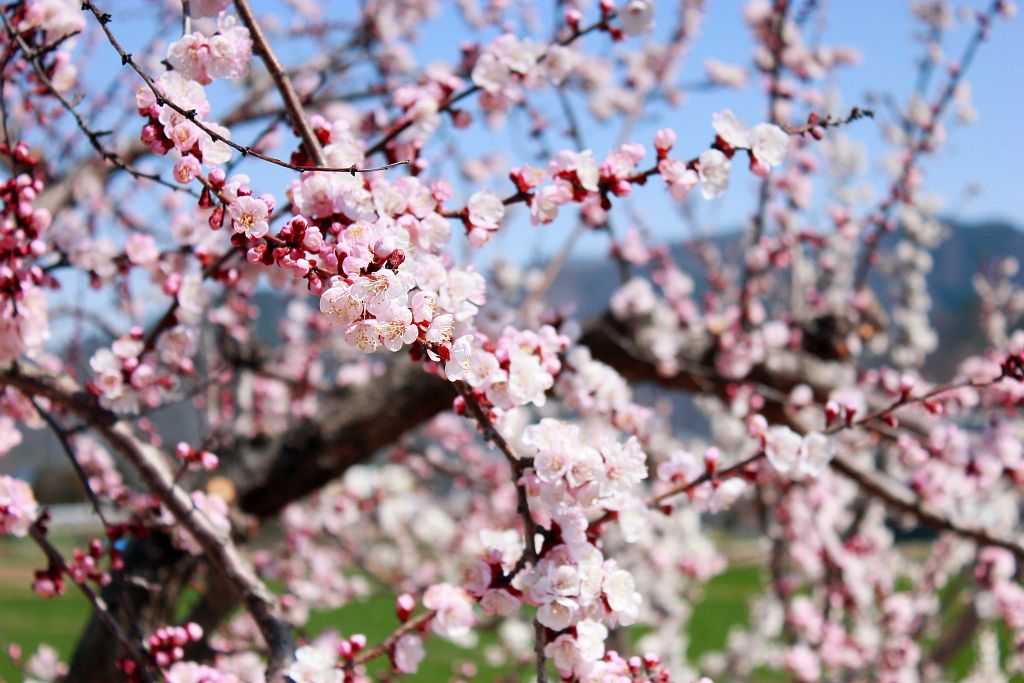あんずの里は3回目だけど、こんなに天気が良くて満開のあんずの花は初めて♪