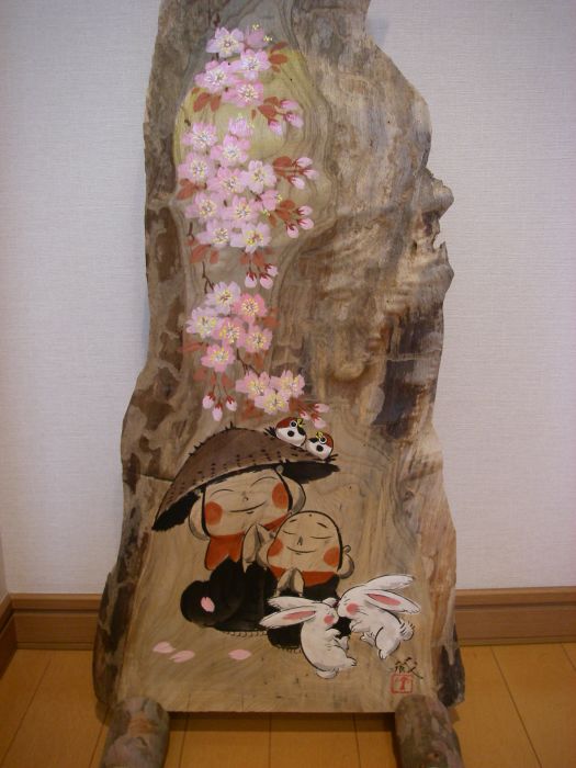 私たちがお願いしたのはお地蔵さんと桜の絵。40分程で完成しました。