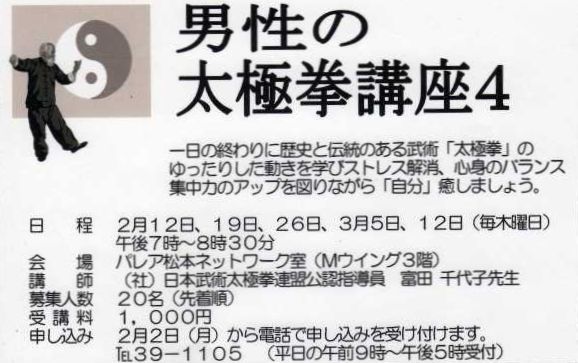 タウン情報という地方紙に「男性の太極拳講座」参加者募集の広告を見つけて申し込むことにしました。