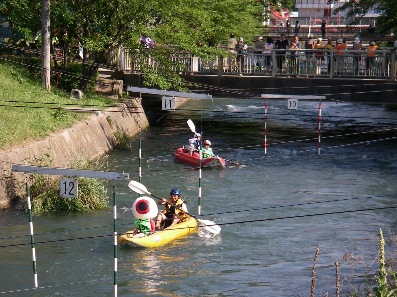 にじますカップは、龍門渕公園内を流れる前川(ラフティング国際大会国内予選も開かれる国内屈指のカヌーのコースらしい)で行われる国内最大のスラロームの草レースです。