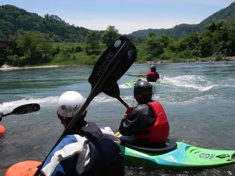 空は晴天。最高のカヤック日和。トロ場をゆったりと景色を眺めながら下ると日頃のストレスも飛んで行きます。懐かしい友達との再会も加わってほんとに楽しい2日間でした。ウィズネイチャーのみなさん、また来年も遊びに来て下さいネ。