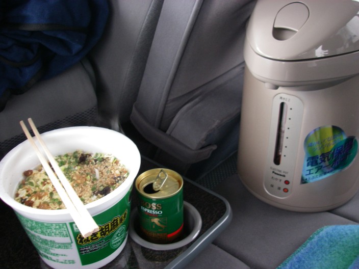 昼飯はハイエースの中でお湯を沸かしてインスタントラーメン。こういう場でもハイエースは活躍しますネ。