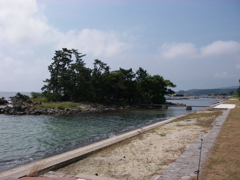 松島オートキャンプ場には南側と北側に2つの小さな島があります。北側の「松島」には橋が架けられていて自由に行き来することができますが、南側の島はいくつかの岩礁が集まってできたようなもので、膝下を濡らして渡らないと行くことができません。