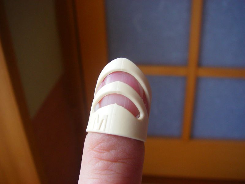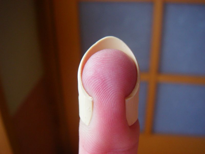 でも、やっぱり自分の爪が一番だし、不自由してるのは人差し指だけなんで、人差し指だけに取り付けることにした。