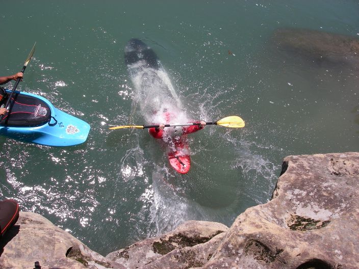極めつけは高さ2mぐらいの岩の上からのカヤックダイブ。