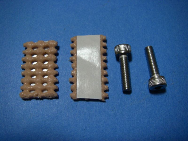 雨に濡れても大丈夫なように(取り付け場所がドライバーが入りにくいところだったという理由もあり)、付属ネジをステンレスの六角穴ネジ(M3×14mm)に交換。ガードを傷つけずしっかり固定できるように、押さえプレートに滑り止めを貼り付けた。