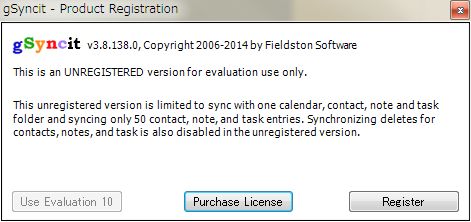 ただ有料で、Google Apps for Businessは500円/年、gSyncitは$19.99(約2000円)/ライセンスもかかる。けど幸いにも、gSyncitの評価版(手動で同期可能)が無料(無期限)で使えるということでさっそく試してみることにした。