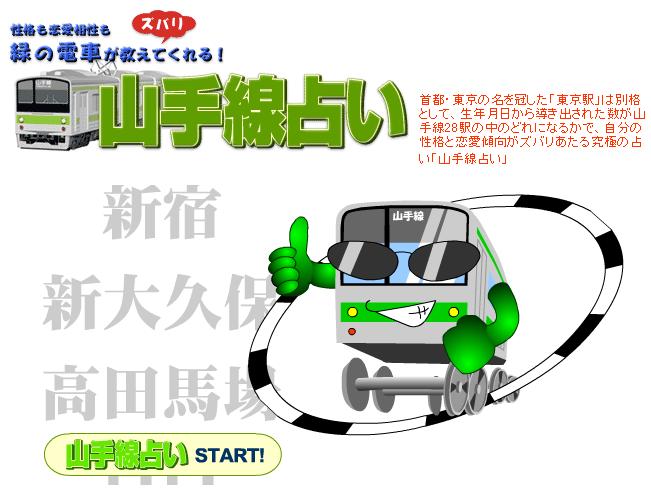 今、山手線占いってのが流行ってるそうですネ(ラジオの情報)。