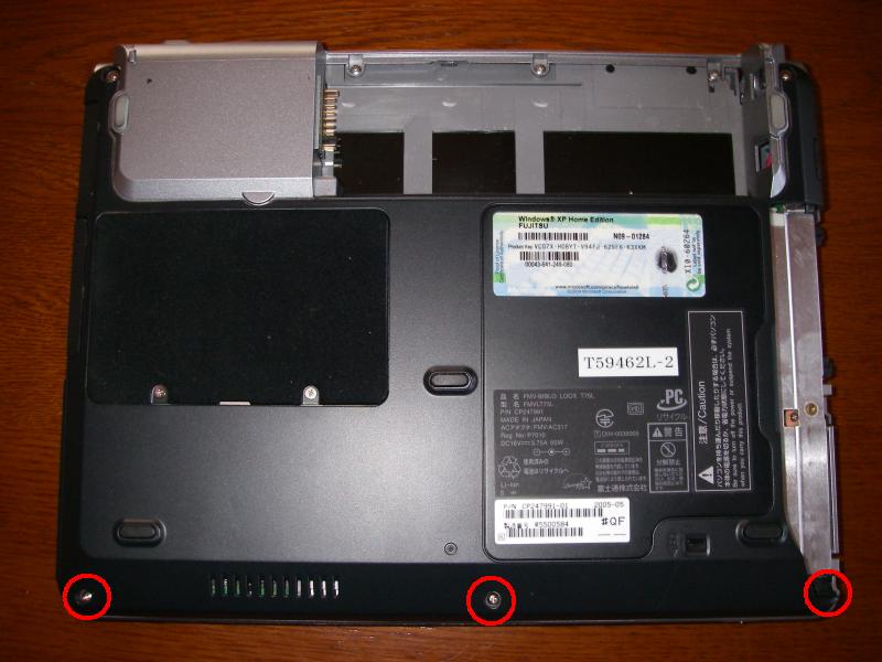 ・バッテリーとCDドライブを外して下側の3つののネジを取り外す