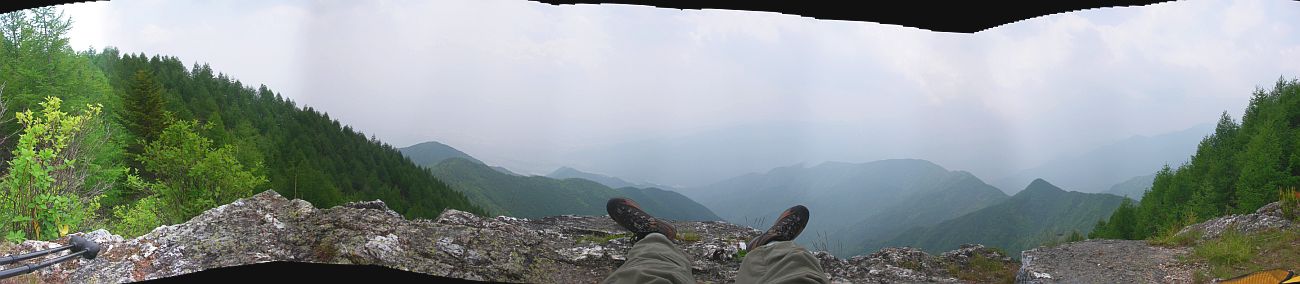 結構急斜面もあるが程よく草木が生い茂り岩場もなく登りやすい。なんといっても途中から両側の視界が開け遠くの山々を眺めながら登れるのが気持ちいい。