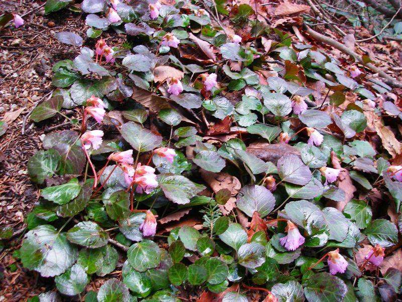 今年は花が咲くのが遅いとのこと。かろうじて咲いてたのはイワウチワ(岩団扇)。