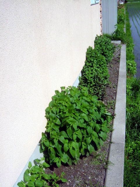3年前に小布施でハーブの苗を買ってきて庭に植えたんだけど、「このまんまだと庭が全部ハーブで埋まっちゃう!」って勢いで増えてきたんで、2年前家の隅っこに植え直しました。