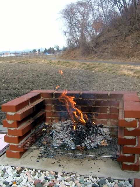 庭といってもネコの額のような狭い庭。普通そんなところで火を炊くことはできないけど、家を建ててすぐの頃にDIYでハーベキュー炉を作ったんで、これを使って焚き火をしました。