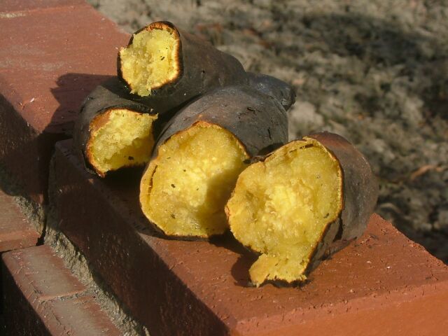 :2007:03/11/04:55 ++ 焚き火で焼き芋(手作りのバーベキュー炉で)