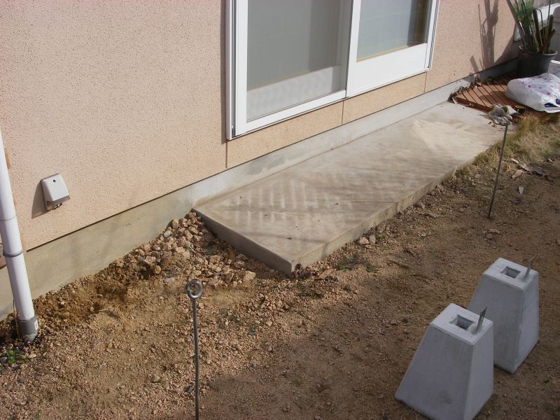 概略の位置をマーキングし、束石の大きさに合せて、30cm×30cm×深さ25cm程度の穴を掘ります。運動不足のせいなのか年のせいなのか、これが結構な重労働。かろうじて2時間半で完成しました。