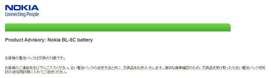ちまたではノキア製携帯電話の電池パック(松下電池製)のリコールが話題になってますネ。