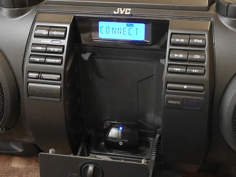 レシーバーはRV-NB70の体内にすっぽりと収まり、変換ケーブルを使った場合(接続可能な場合の話)よりもずっとスマート。