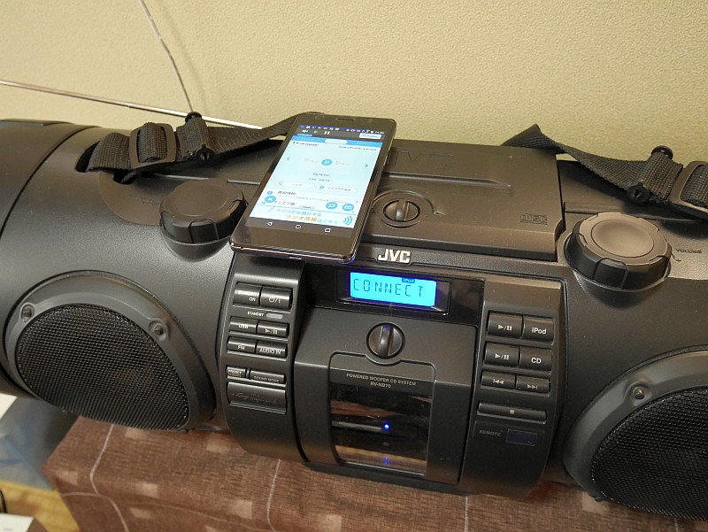 Bluetoothを持つ端末なら最近の高機能スマホでも低スペックの使い古しスマホでも、お気に入りのMP3ミュージックからradikoで聴けるラジオ放送まで、Bluetooth経由で何でもパワードウーハーシステムで聞けちゃうんだよね!