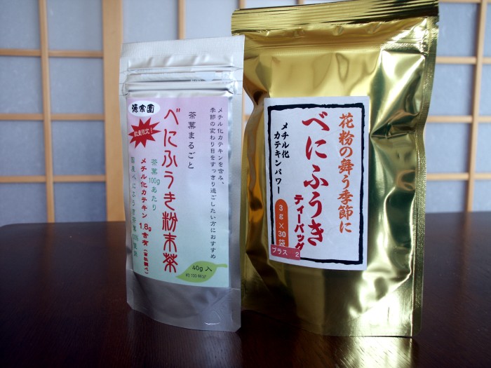 で今年はというと、べにふうき茶がいいという噂を聞き、さっそくティーパックを奥の茶屋さん、粉末タイプを源宋園さんから購入しました(どちらも送料無料)。