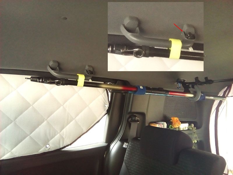 ついでに、フリードスパイクの秘密基地化⑨ ~一人車中泊&輪行モード〜で紹介した、釣り竿の収納方法の改善の話。