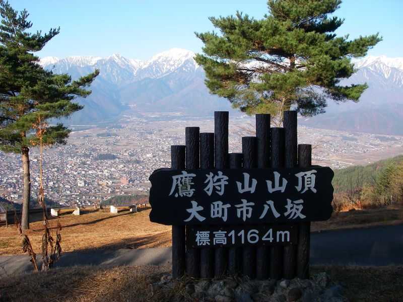 昨日は快晴だったんで、大町出張のついでに、北アルプスの絶景ビューポイントとして有名な「鷹狩山山頂」に行ってみることにした。