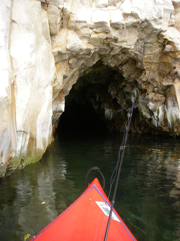 お次は東側の半島へ。岸壁のいたるところに謎の洞窟。洞窟の奥はいったいどうなってるんだろう?
