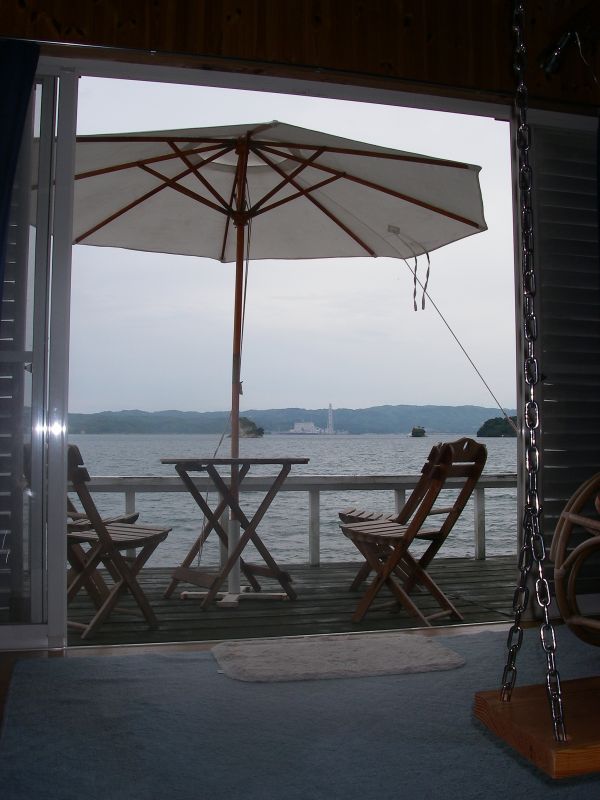 その別荘はマリンパーク海水浴場のすぐ近くにありました。しかもカヤックが常備されてて1階のスロープからそのまま船を揚げ降ろしできます。おぉ~、なんとすばらしいおうち!