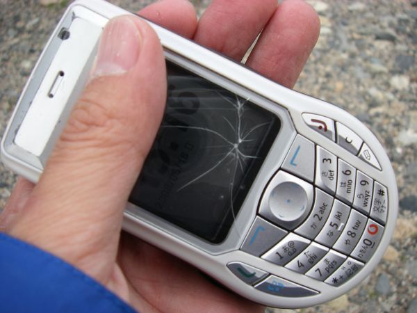 足下を見るとなんと落っこちたのは大事にしてる我が携帯702nk。そして落ちた携帯を拾い上げて見ると...ガ~ン!液晶が割れてる~!? (T-T) はじめっからこんな不幸なことが起きるなんて、今日はなんか嫌な予感。