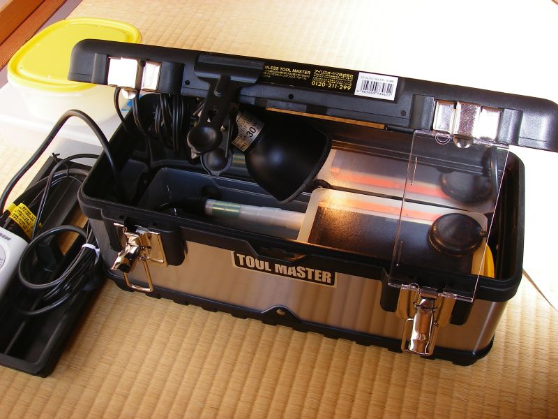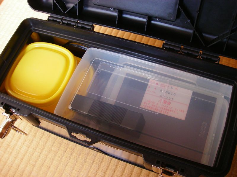 ピッタリ入るタッパを2段に重ね、2種類のヒーターもツールBox内に収納。