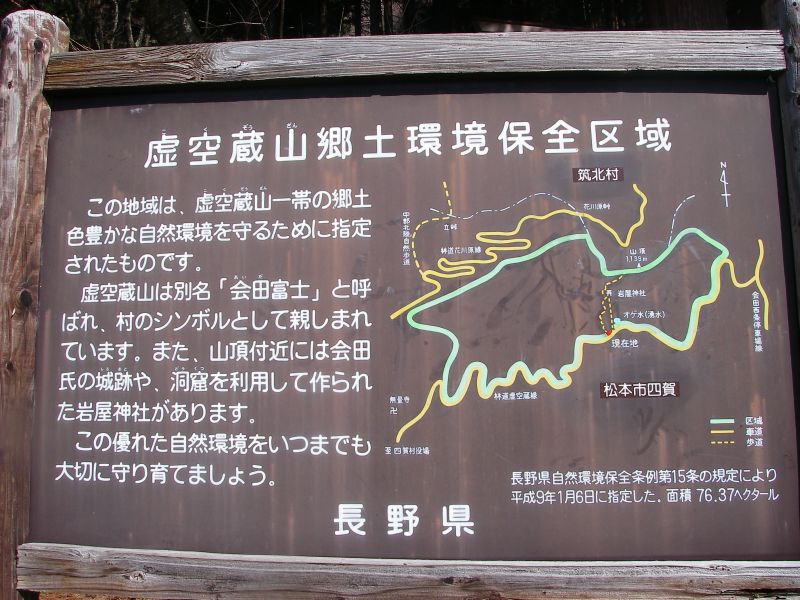 今年最初の登山で、去年同様膝の不安もあるため、目的地を近場で標高差が低く見晴らしの良い、旧四賀村の「虚空蔵山(こくぞうざん)」に決めた。