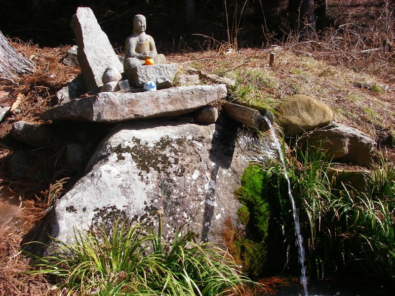 登山口横にあるオゲ水の湧水をペットボトルに満たして、いざ出発!