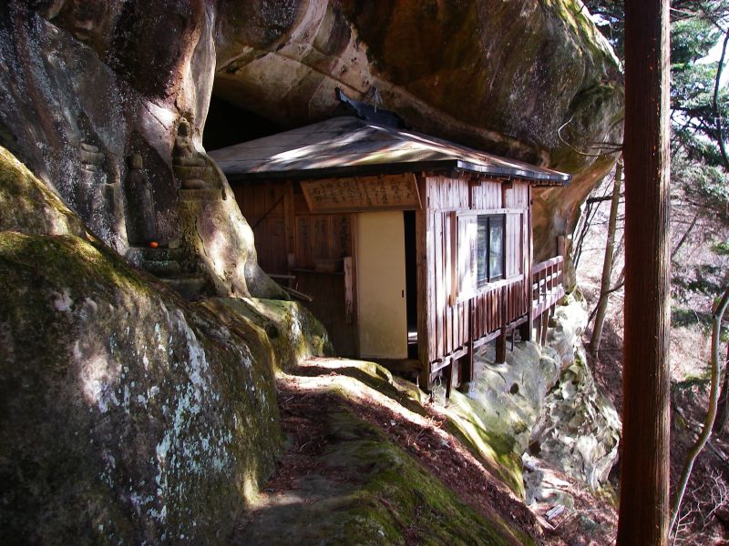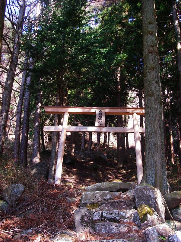 登り始めて約10分で第1チェックポイントの岩屋神社に到着。