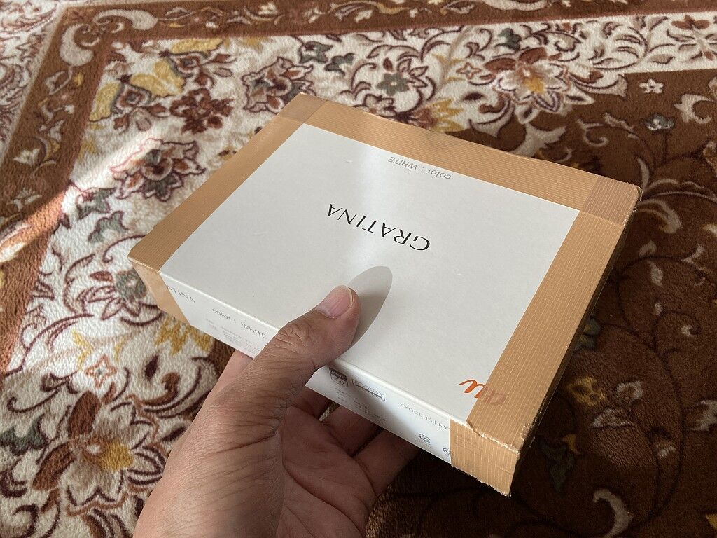 よさげな箱を見つけて梱包したら、サイズが19x14x4cm(中央4.3mm)になってしまった。