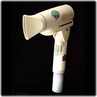 コードレスヘアドライヤーってものを発見! 商品名はイオニート。小型のガスボンベを使ってガスの炎で空気を暖めて、乾電池でファンを回して風を送り出す仕組みらしい。しかも、このイオニートからでる温風にはイオン化された大量の水分が含まれてて、髪にすごくいいんだそうです(嘘か真かプロの美容師さんも愛用してるとか)。これはいいかも!?と思ったものの定価が26000円とかなり高め。ところが...
