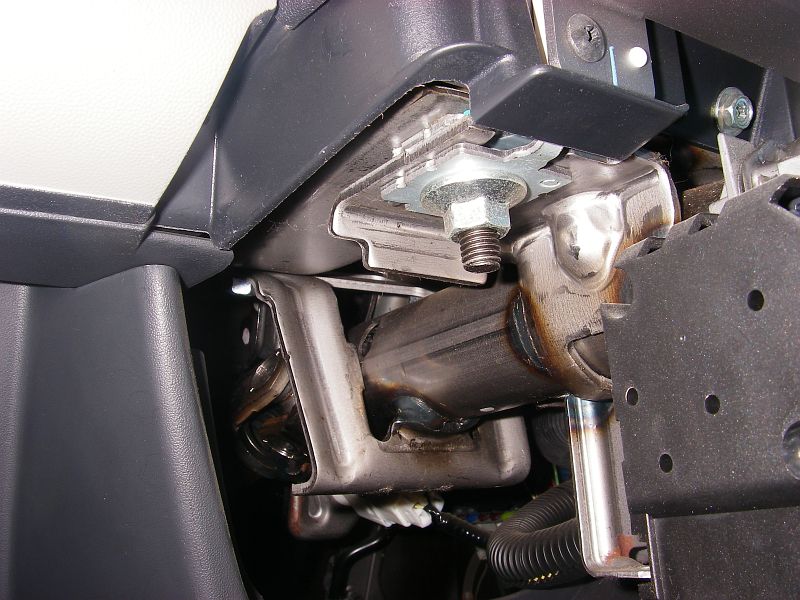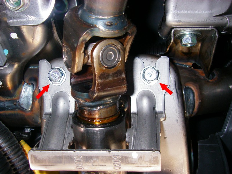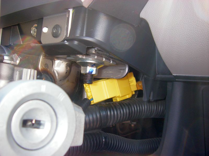 がっ、奥側のネジが外れず、ステアリングが僅かしか下がらないため、ワッシャをネジに入れることができない。(T-T)