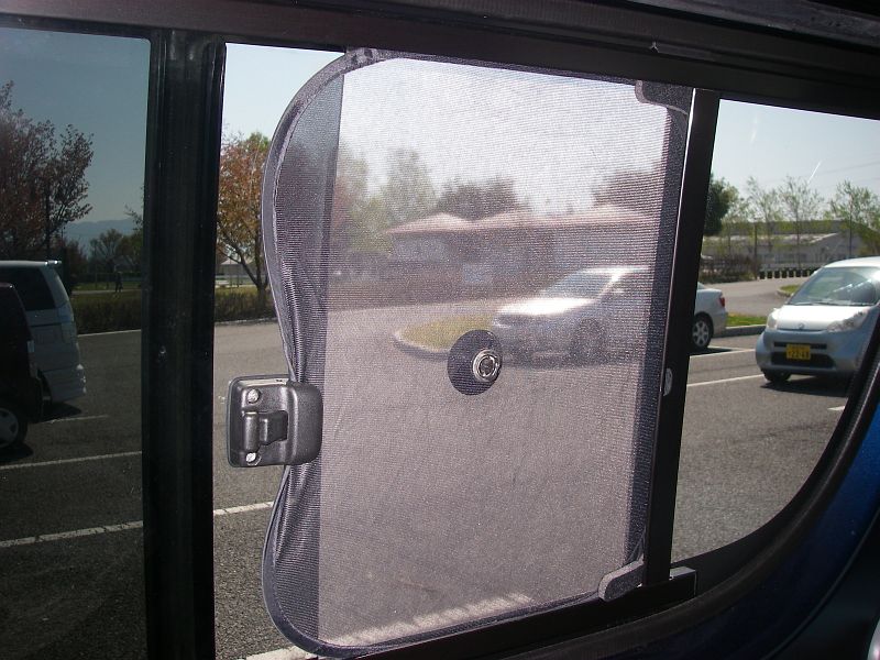 リア座席の窓は、専用の網戸(バグネット)も売られているが、1万円/枚とかなり高め。