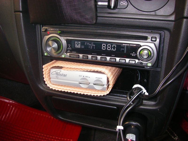 取付台が付属するため車への設置は特に難しくはないが、画面が小さい分、音声だけは鮮明に聞こえる様、音声をデジタルオーディオプレーヤーで実績のあるFMトランスミッターでFMに飛ばすことにした。