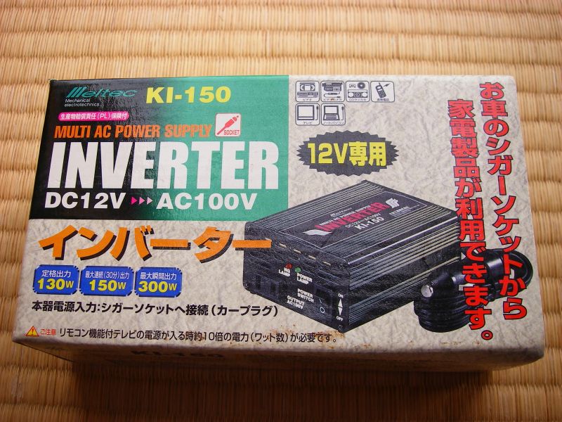 そこで思い出したのが、ステップワゴンの時代に使用し現在お蔵入りしているインバータ(DC12V→AC100V)。
