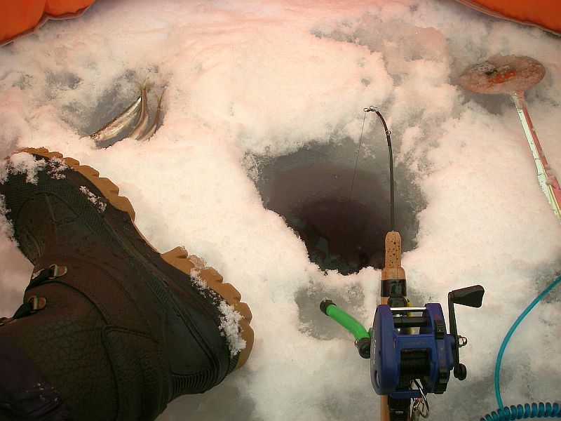 穴を何箇所か変えてみても全然ダメ。周りもほとんど釣れてない様子。
