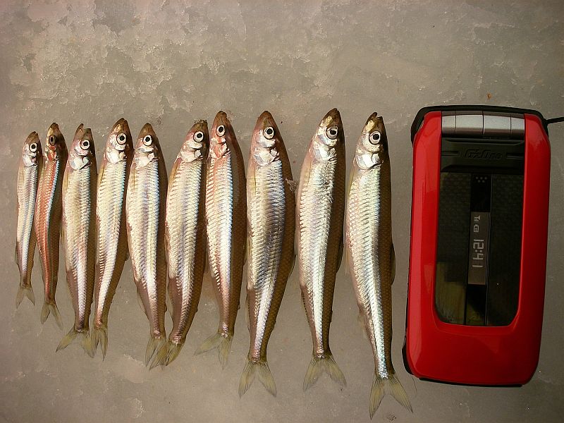 ワカサギの大きさは、なんと10cm!何年魚だろう? さすが7シーズン振りの解禁だな。