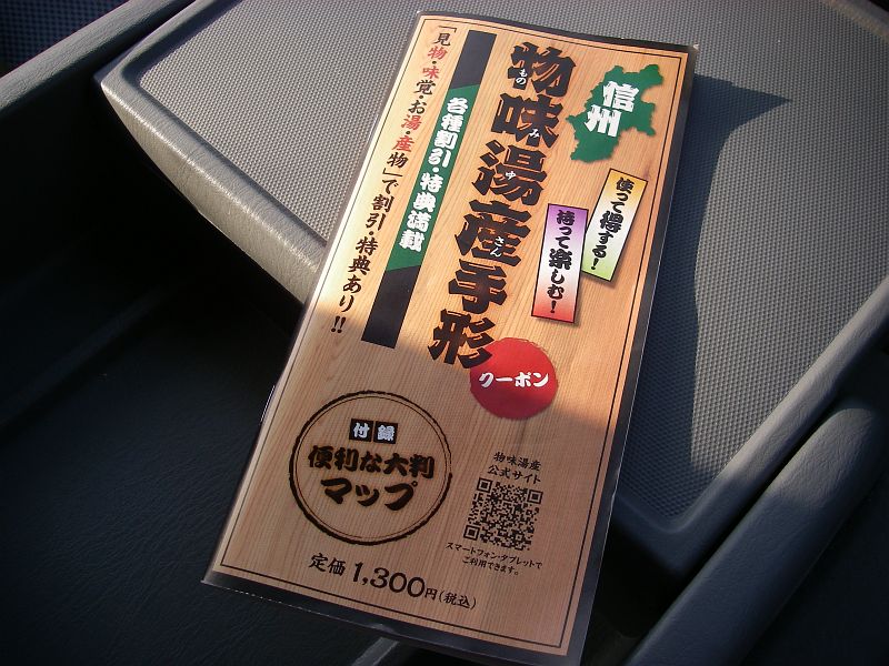 実は一昨年初めてこれを購入したのだが、その頃は残念なことに松本近郊の無料温泉施設が非常に少なく(半分は昼神温泉で松本0)、結局半分しか利用しなかった。(^^;