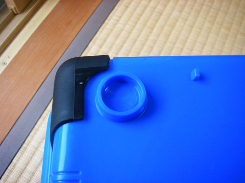 クーラーボックスの底は4箇所の出っ張り(足)がある。周囲のエッジは結構尖っておりバイクに乗っけた際にシートを傷付けたり、クーラーボックスを地面に置いた時に真ん中の穴に砂や泥が入り込みシートを汚す恐れがある。