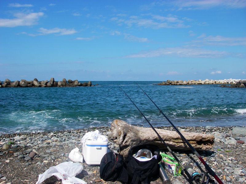 場所は糸魚川市の大和川海水浴場。ここまで自宅から約120km。遅い時間(AM7:50)に家を出たので着いた時間は既にAM10:30。釣果はあまり期待できないかな...