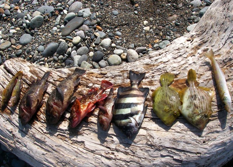 キス1匹、アイナメ2匹、カワハギ2匹、カサゴ4匹、そして石鯛1匹。