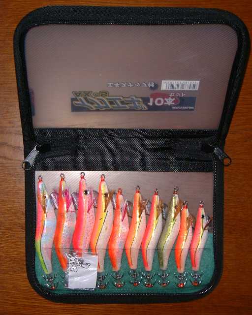 次はエギセット。今年5本ぐらいロストしちゃってストックがなくなったんで、数を揃えるためYahoo!オークションでケース付10個セットをGet! 安物のエギだけじゃちょっと不安だし、来年になったらちょっといいエギも買おうかなぁ~。