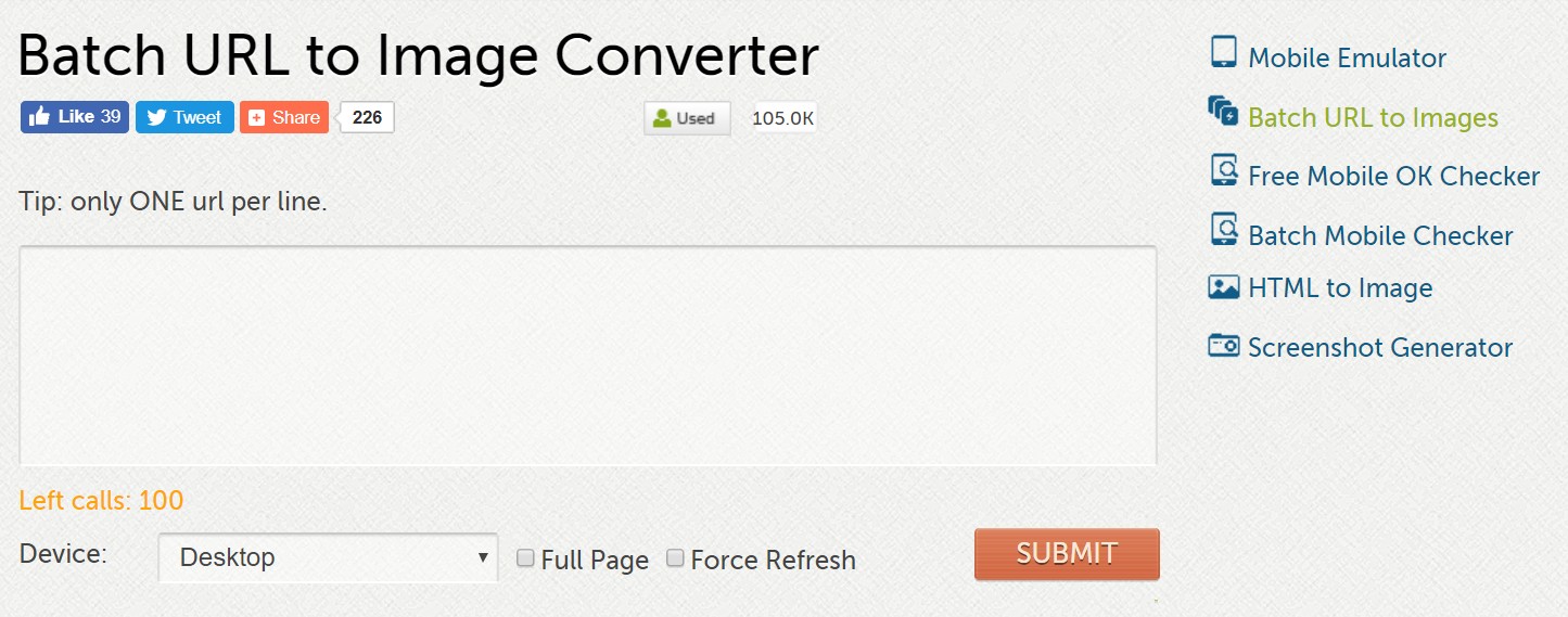 「Page2Images」の「Batch URL to Image Converter」は、指定したURLの